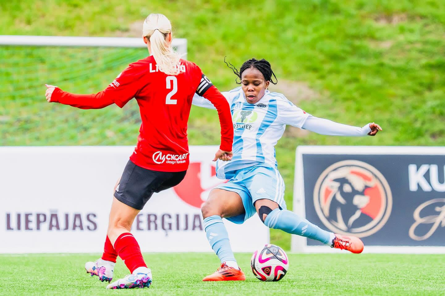 La saison sportive de Christelle Ursulla Demba, capitaine de l’équipe nationale féminine de football de la République Centrafricaine et joueuse au Riga FC Women en Lettonie, a été marquée par des réussites remarquables. Son équipe a démontré une grande cohésion et une énergie positive dès le début des championnats locaux. En tant que titulaire clé, Christelle s’est illustrée comme l’une des meilleures buteuses, jouant un rôle crucial dans la victoire lors de la Coupe de démarrage, un événement qui a inspiré ses coéquipières.